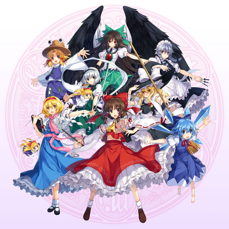 霊夢、魔理沙、チルノ、咲夜、妖夢、アリス、諏訪子、お空の8キャラです。