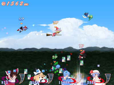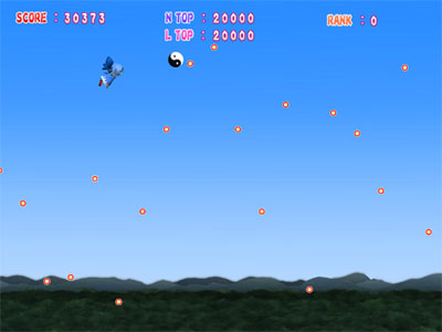 空を飛んで、浮いてる得点アイテムを集めながら最後に一番得点が多い人が勝ちなゲームです。